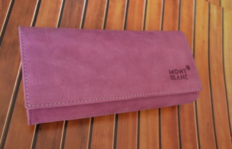 dompet kulit wanita branded montblanc. ukuran 9x18cm. bahan kulit spai asli. warna magenta. desain dompet banyak sekat. slot kartu dan foto readdy. ada kantong uang receh. Berat 300 gram